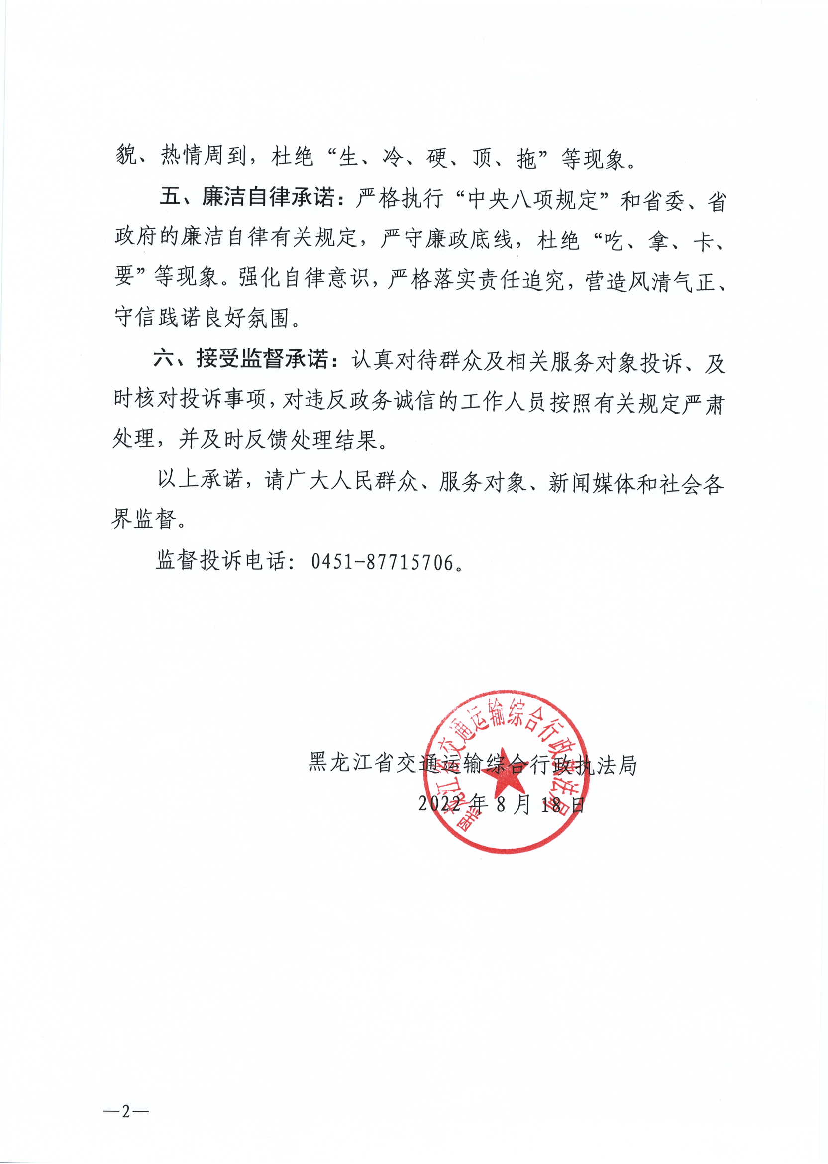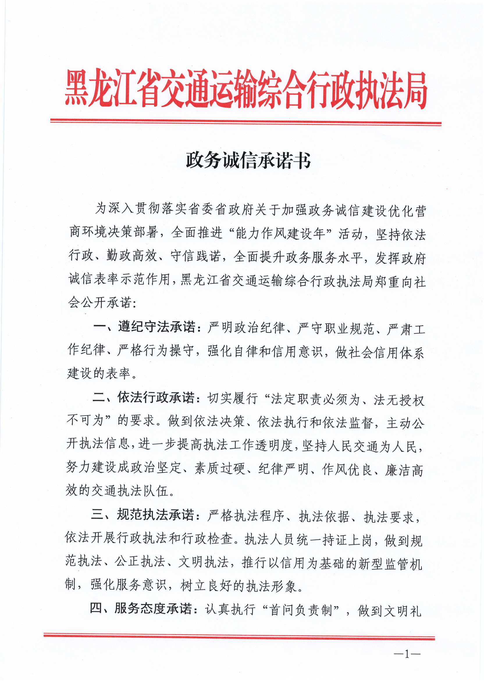 黑龙江省交通运输综合行政执法局政务诚信承诺书